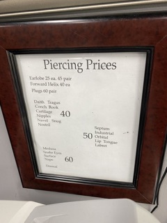 Took my daughters there for a round two of ear piercings... Since first piercing had closed up. Quick and efficient, and healing great! This is 1 moth post piercing